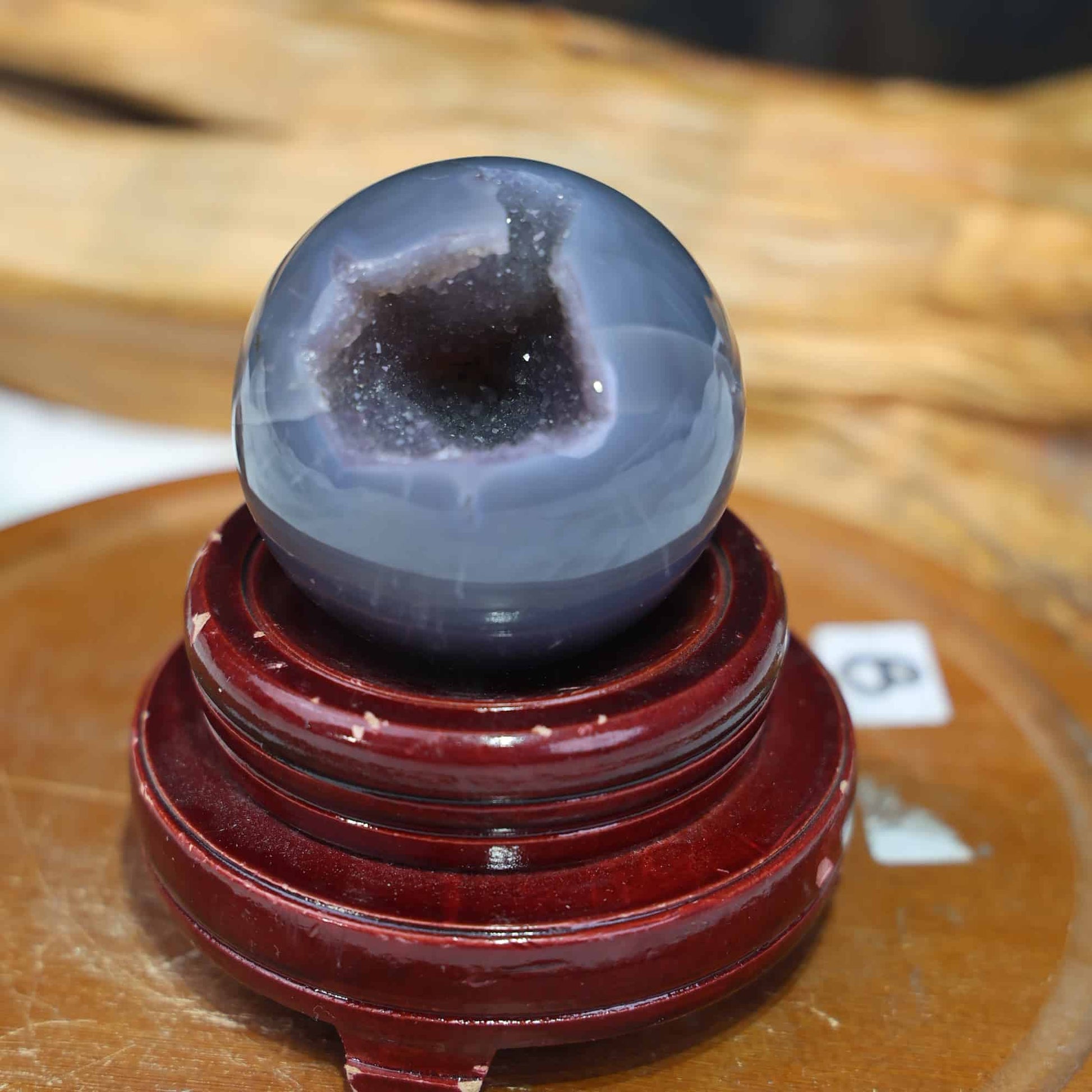 A gemstone formed when tiny, sparkling quartz crystals grow over an agate base, typically within volcanic rock cavities